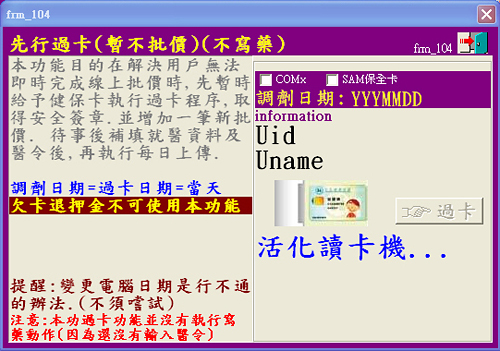 1. 請先在藥局內,將有蓄電功能的讀卡機驗證完畢,可透過DPCIP或本軟體, |